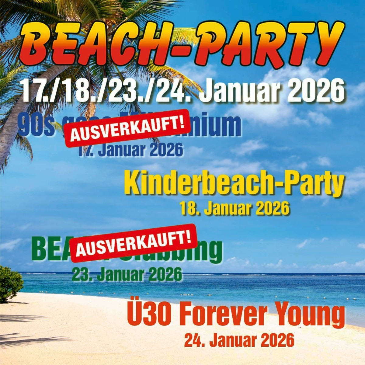 ► Forever Young - Ü30 Beach - Samstag 24. Januar | Tickets nur noch an der Abendkasse