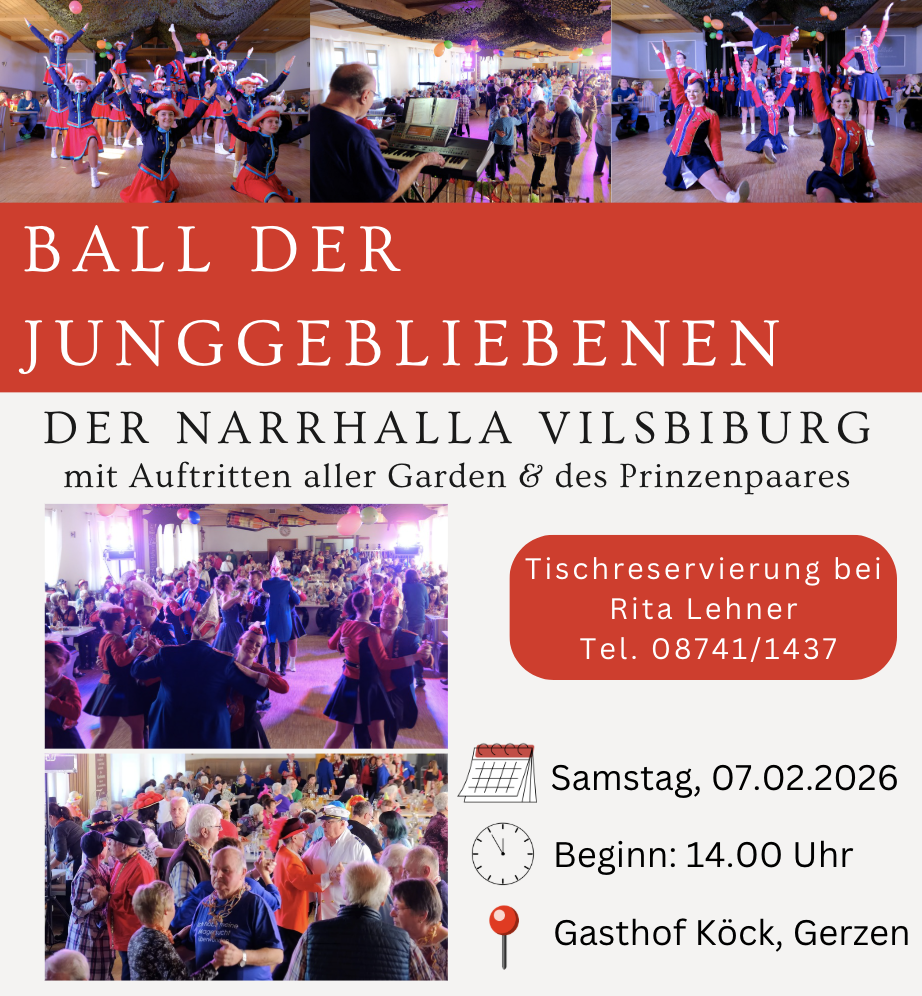 Die Narrhalla Vilsbiburg lädt auch in diesem Jahr wieder zum Ball der Junggebliebenen ein!